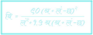 The formula is an equation given in terms of Bibhorr kon बि composed of lamb लं, laghu ल (or छ ) and the shrav श्र in the aerospace triangulated lattices. The formula belongs to the Samahikaran class of algorithmic equations. For a given samkon triangulated lattice with shrav श्र , lamb लं and laghu छ, the Bibhorr angle बि is righteously given in Sanskrit/Hindi alphabets as: